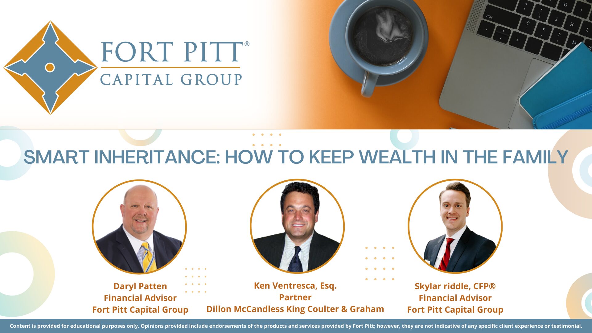 Fort Pitt’s Financial Advisors, Daryl Patten and Skylar Riddle, CFP® host guest speaker Ken Ventresca to discuss financial planning for multiple generations. The presentation covers: Structuring your family’s wealth plan Preserving assets for the next generation Minimizing taxes Financial literacy for the next generation And[...] Continue reading9 May, 2024