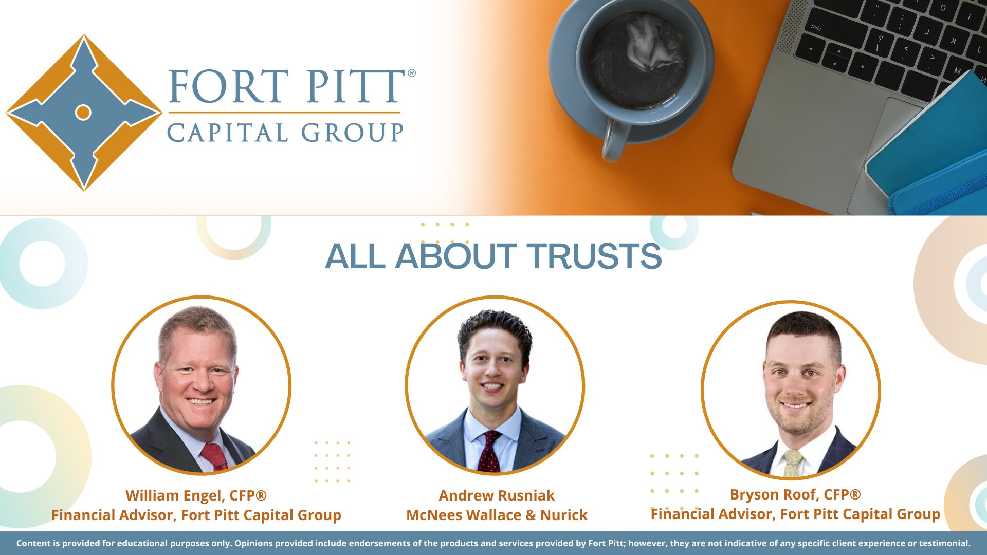 Fort Pitt’s Financial Advisors, Bryson Roof, CFP® and Bill Engel, CFP® host Andrew Rusniak from McNees Wallace & Nurick to discuss what to know about trusts. They cover a range of topics, including: What is a trust Common types of trusts and reasons to use them Who needs a trust How to establish a trust What is the cost[...] Continue reading12 January, 2024