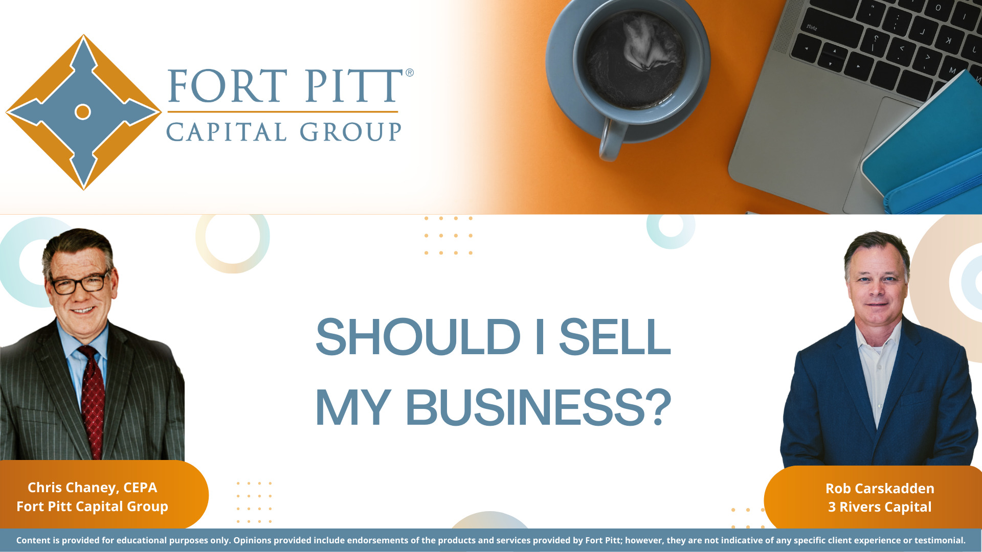 Join 3 Rivers Capital’s Managing Partner, Rob Carskadden, and Fort Pitt’s Financial Advisor and Certified Exit Planning Advisor, Chris Chaney, as they discuss the financial, emotional, and social issues you need to address when selling your business. They will cover a range of considerations, including: Reasons to sell Reasons not to sell[...] Continue reading24 March, 2023