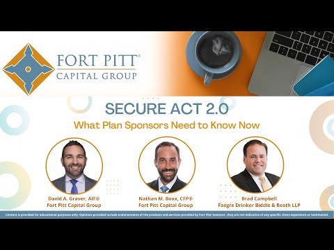 Join Fort Pitt Capital Group’s retirement plan services advisor Nathan Boxx, CFP®, along with Faegre Drinker Biddle & Reath LLP partner Brad Campbell, as they cover what Plan Sponsors need to know about Secure Act 2.0. They will highlight and discuss essential points such as: